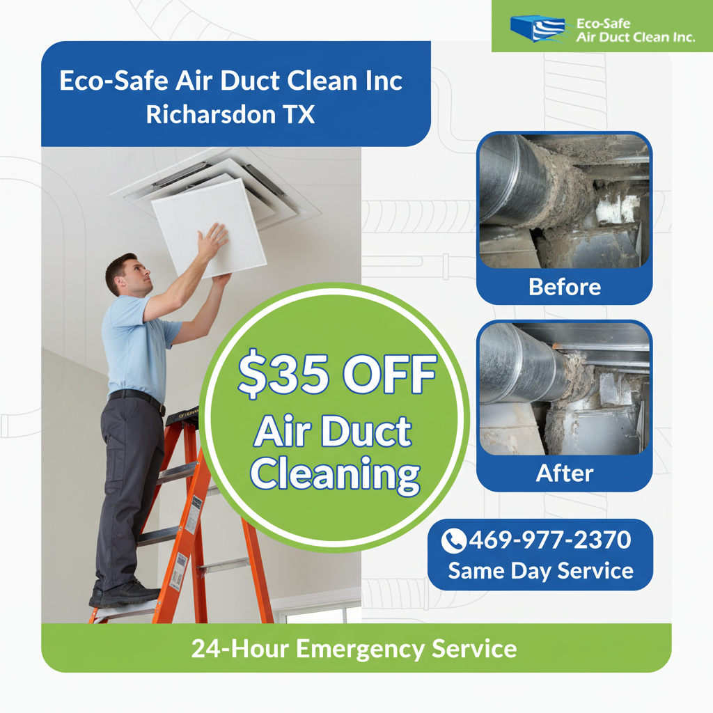 Take advantage of limited-time savings designed to help Richardson homeowners enjoy cleaner air without stretching their budget. Eco Safe Air Duct Cleaning Richardson TX offers straightforward deals with honest pricing, no surprises, and the same reliable service our customers trust every day.